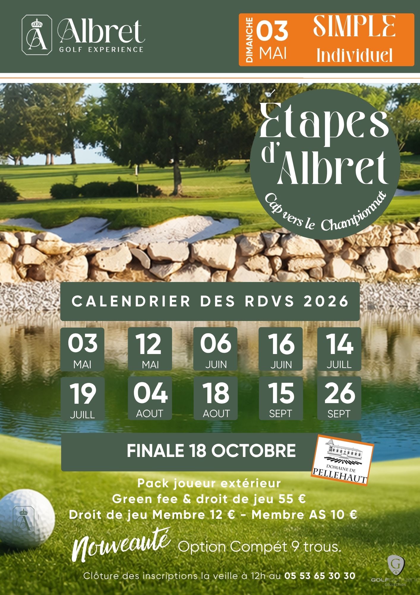 Inscription 18 trous (9trous par téléphone) Etapes d'Albret Dimanche 03 mai 2026